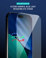Blue light filtering screen protector with toughened 9H glass, scratch resistance and edge-to-edge coverage. Reduces exposure to blue light while maintaining clarit...
