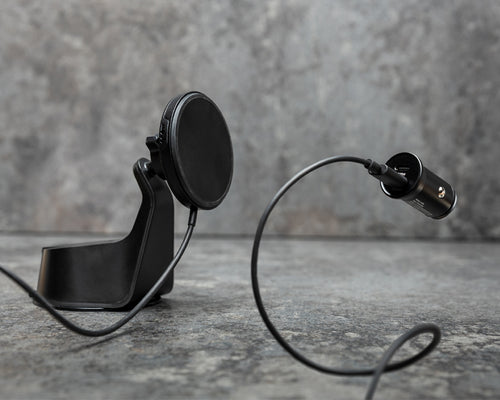 There’s a lever on the base of the suction mount which should be lifted up when you press it against your flat, shiny surface. Then push the lever down to secure it. There’s also a fastener on the mount head’s ball joint to keep it still when you’ve rotated it to your chosen angle, so make sure that’s tightened too before you plug in the cable. Finally, to attach your phone, simply connect your phone using the MagSafe® compatible magnets and you’re good to go!