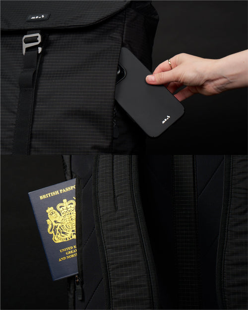 Different people have different preferences, so we reimagined our design process for this backpack. The Extreme Commuter range prioritises top-notch tech protection and functionality, with AiroFoam® impact-absorbing technology and a more structured build. In comparison, our Day Backpack embraces a minimalist, effortless aesthetic in a lighter design. Both backpacks offer seamless access to the main compartments – just in different ways.