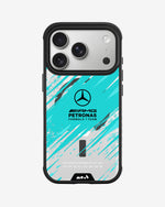 • An exclusive printed case designed for the Mercedes-AMG PETRONAS F1 Team and its fans, featuring graphics inspired by the team’s iconic visual identity.