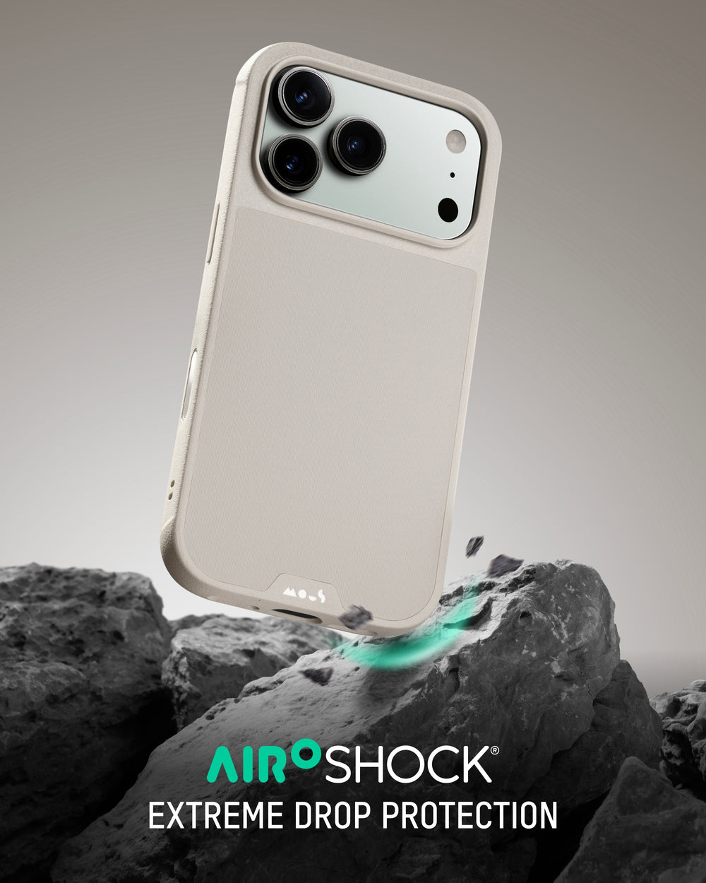 A high-impact material, engineered to absorb and disperse energy during drops and shocks. Designed to slow the rate of deceleration upon impact, AiroShock® cushions your device by reducing the force it experiences when it hits the ground.