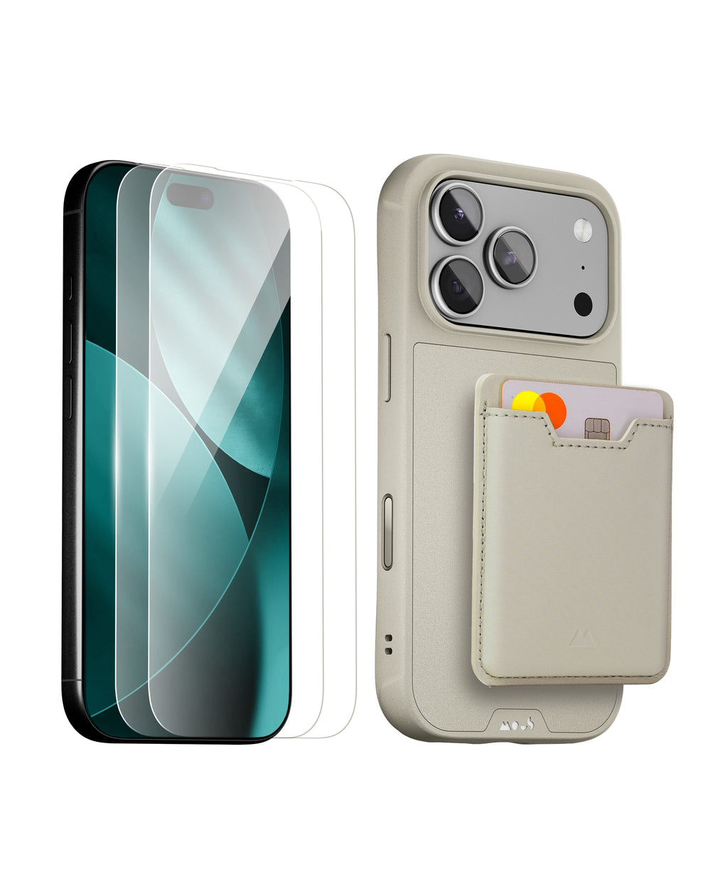 This bundle is designed as the ultimate iPhone starter kit, giving you everything you need to hit the ground running with your brand-new device. It includes a Mous Limitless case – our flagship protective case featuring AiroShock® impact-absorbing technology, a reinforced camera bump, a patent-pending Camera Control Button and premium material finishes.