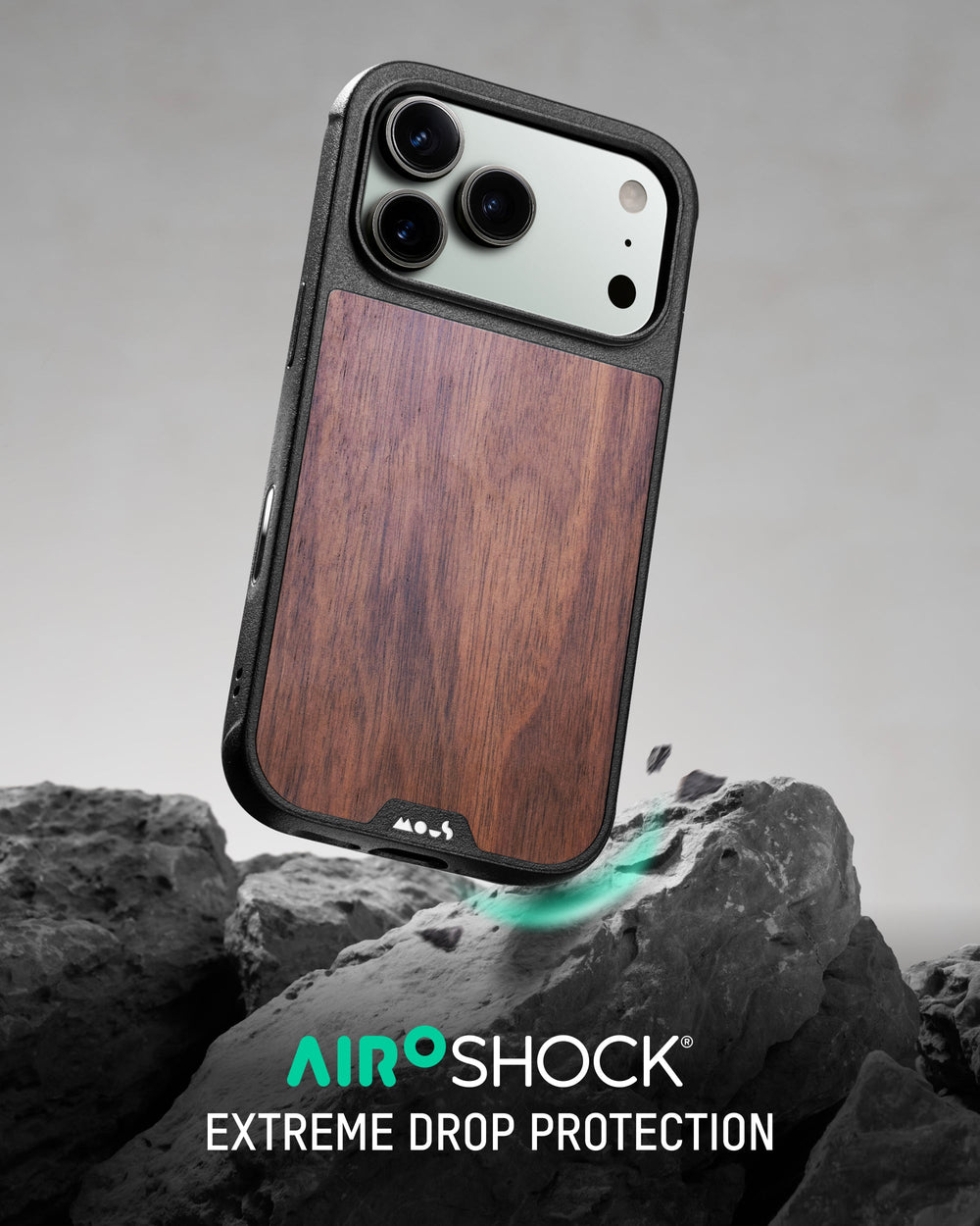 AiroShock® impact materials and a reinforced camera bump combine with a rigid shell to deliver Mous-grade impact defence.