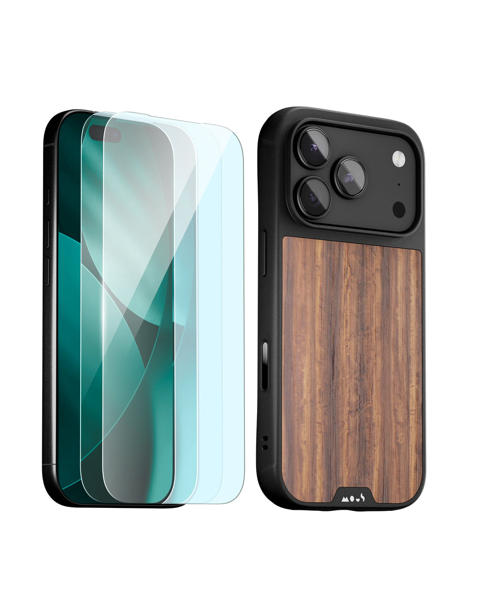 This bundle is designed to give your new iPhone complete, 360-degree protection straight out of the box. It includes a Mous Limitless case – our flagship protective case featuring AiroShock® impact-absorbing technology, a reinforced camera bump, a patent-pending Camera Control Button and premium material finishes. Alongside it, you’ll get a tough, durable glass screen protector (ceramic, tempered, privacy or blue light depending on your choice) to safeguard your display from drops, scratches and daily wear. Together, they deliver everything you need to keep your iPhone fully protected.