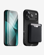 All-in-one iPhone starter kit – Limitless case with AiroShock® drop defence, screen protector for 360° coverage and a magnetic card wallet.