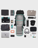 • 18 purpose-built pockets, including stretch mesh, quick-access, hidden AirTag and water bottle holder.