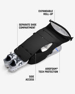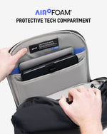 The Optimal Protective Roll Top Backpack is built for serious protection. A separate tech compartment is equipped with AiroFoam® impact-absorbing technology, protecting laptops and tablets from drops and shocks. It's also highly water-resistant, keeping your gear safe from rain, spills and splashes – though we wouldn’t recommend submerging it in water. Whether you're caught in a storm or on the move, your tech stays protected.