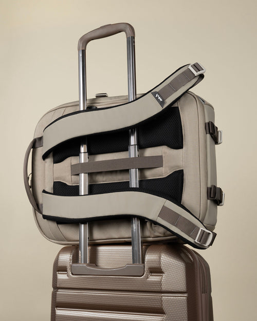 • Luggage pass-through strap slots over suitcase handles for smooth airport navigation. Base lash straps let you secure extra items.