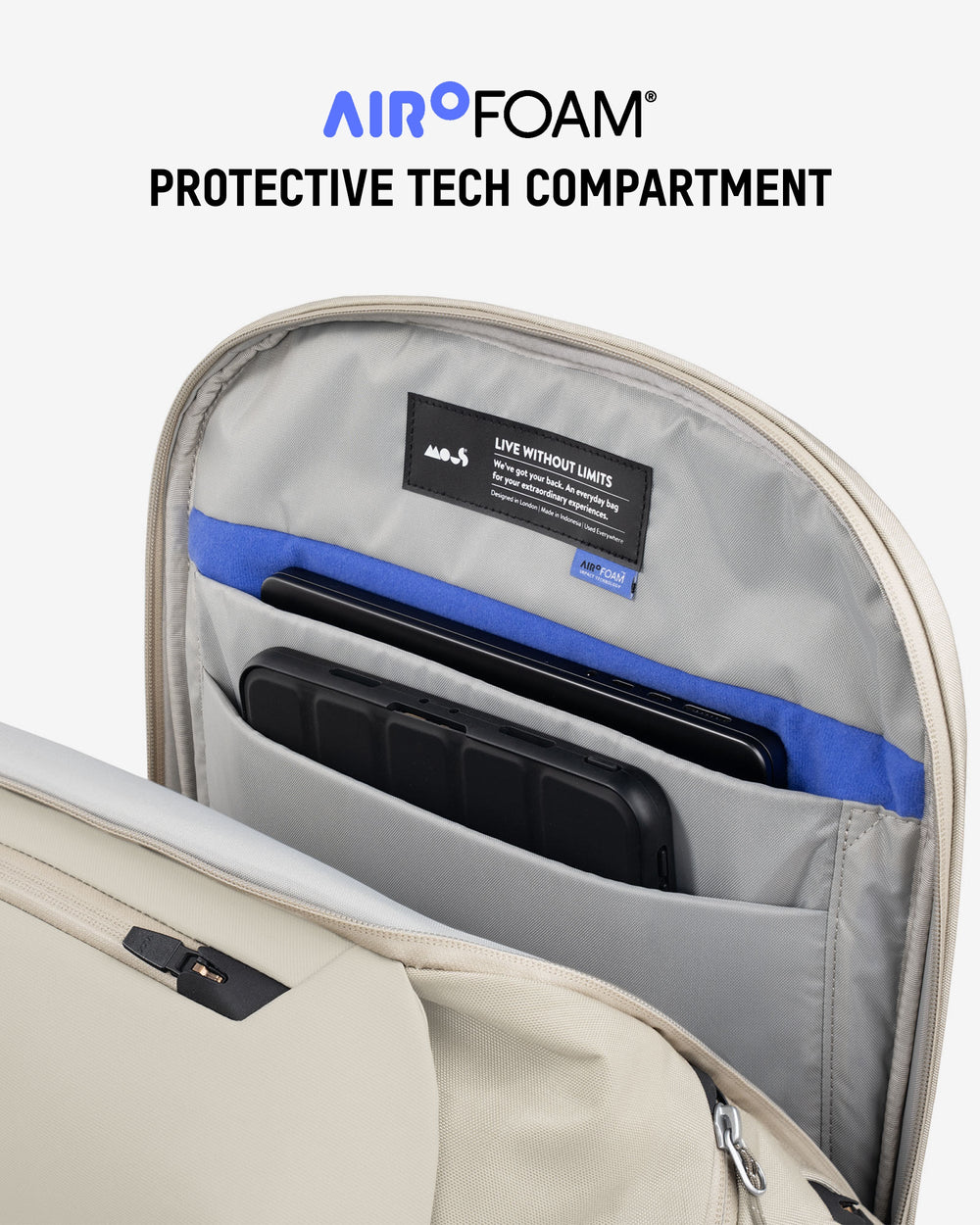 • Protective tech compartment with AiroFoam® absorbs shock from drops.