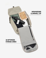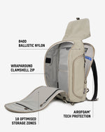 • 18 purpose-built pockets, including stretch mesh, quick-access, hidden AirTag and water bottle holder.