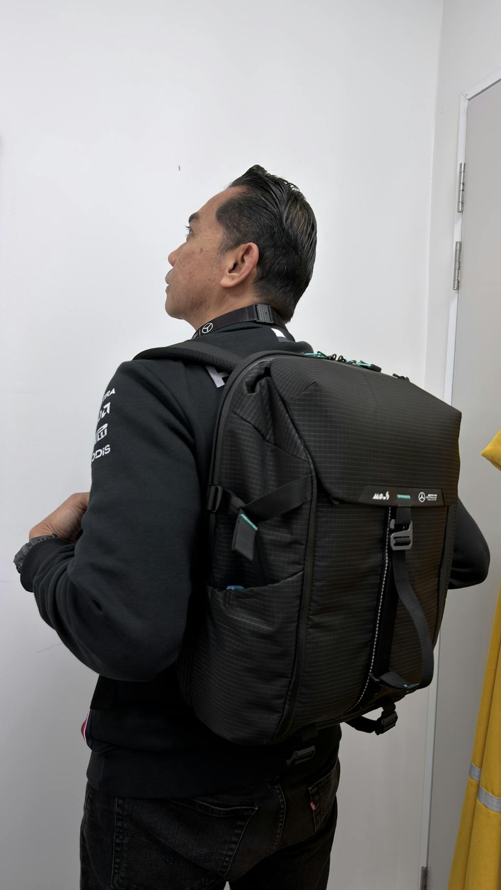 This backpack offers the same high-performance design, durable materials and optimised organization as the Mercedes-AMG PETRONAS F1 Team variant it just does not feature Mercedes-AMG PETRONAS F1 Team branding like the ultra teal trims and logo.