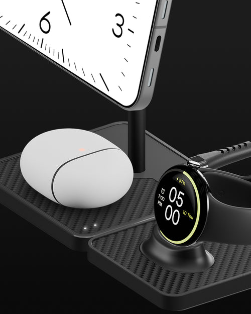 A fast, reliable wireless charging setup for phone and Pixel Watch. Sleek, simple and engineered to keep your devices powered at home or on the go.